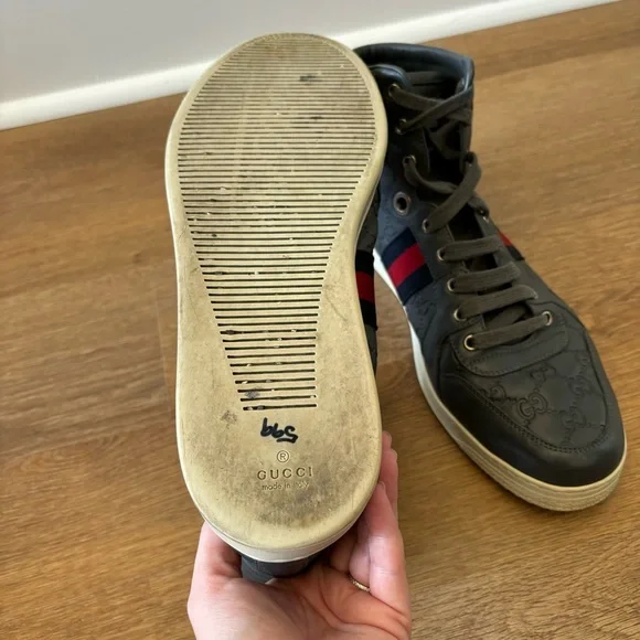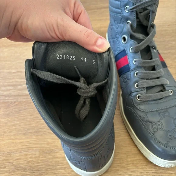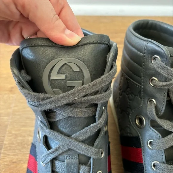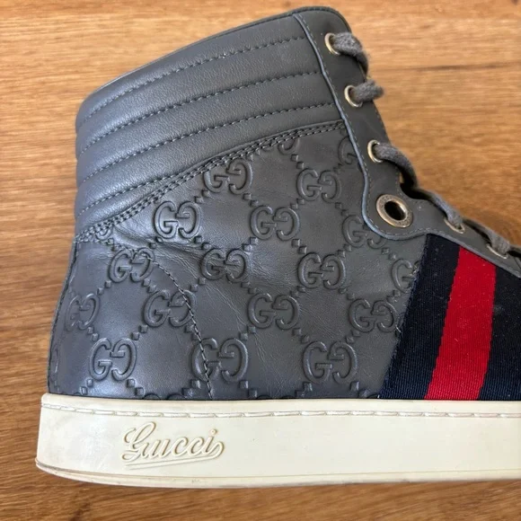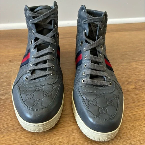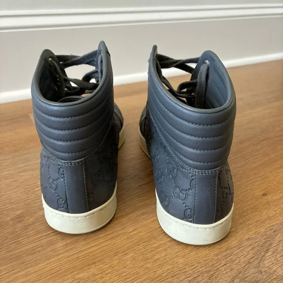 Coda Guccissima Gray Leather High Top Sneakers 221825 Size 11