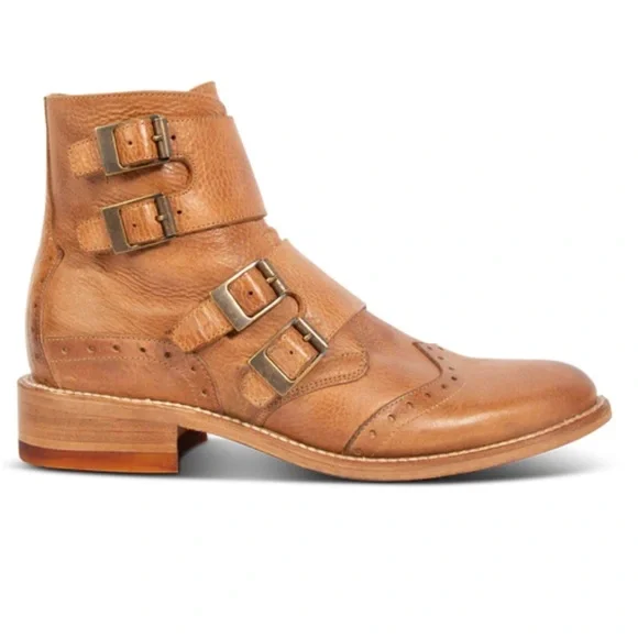 Freebird Tan Leather Boots with Vintage Charm