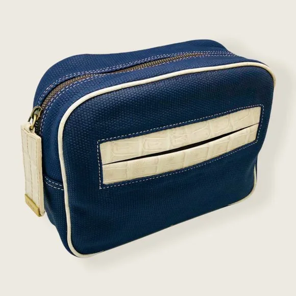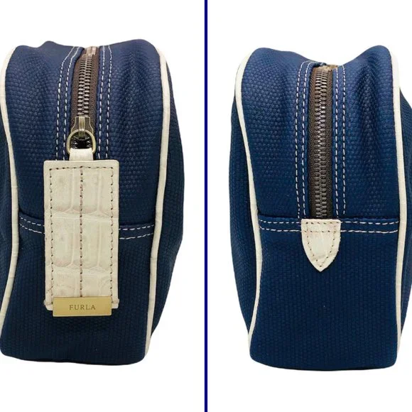 NEW Furla Textured Leather Travel Case Makeup Bag