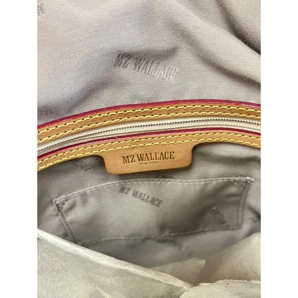 MZ Wallace Nylon Chelsea Large Tote in Leaf Print Crossbody Tropical SummerDust Bag IncludedShoulder StrapPreowned/gently used Approximate measurementsHeight: 13.75 inchesLength: 14 inchesWidth: 7 inchesShips fast!