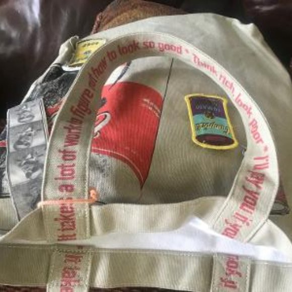 Authentic. ANDY WARHOL "Campbell´s Soup" Tote BRAND NEW WITH TAGSMeasures approximately 15" x 15" x 4"Tan CanvasAndy Warhol Personality TagSoup Can PinsComes with The Museum Of Modern Art Certificate Entitled "SHOE"Inside strap reads "It Takes A Lot Of Work To Figure Out How To Look So Good*""Thick Rich Look Poor* I´ll Pay You If You"BRAND NEW VINTAGE ITEM, NEVER USED, CLEAN AND CRISP
