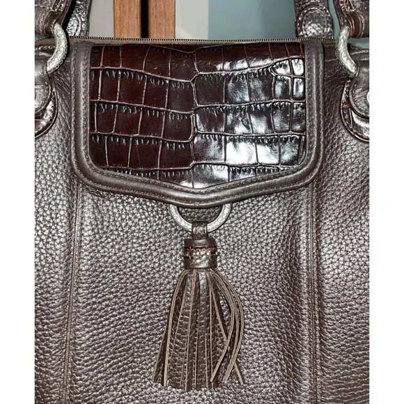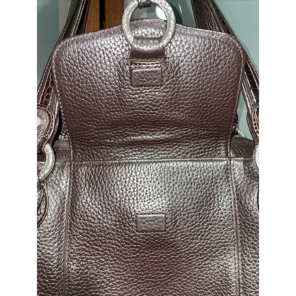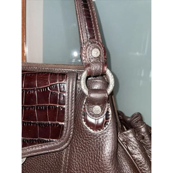 BRIGHTON Croc Embossed Brown Pebbled Leather Silver Accented Shoulder Hand Bag