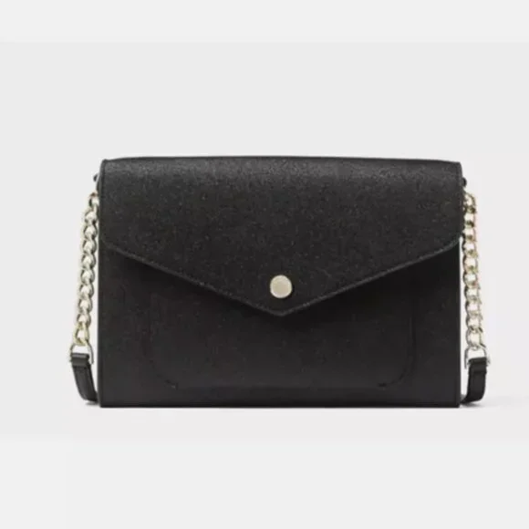 Kate Spade Glitter Tinsel Black Flap Crossbody K9336 NWT