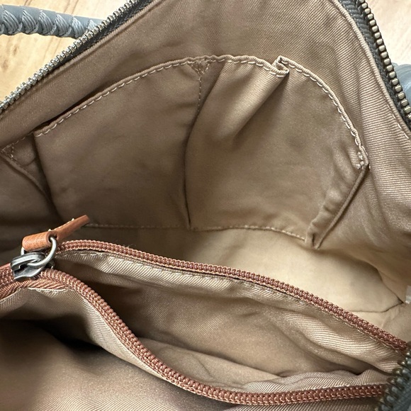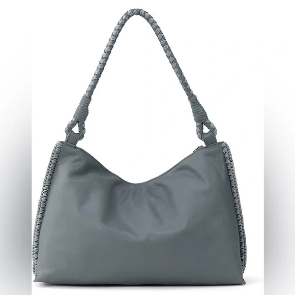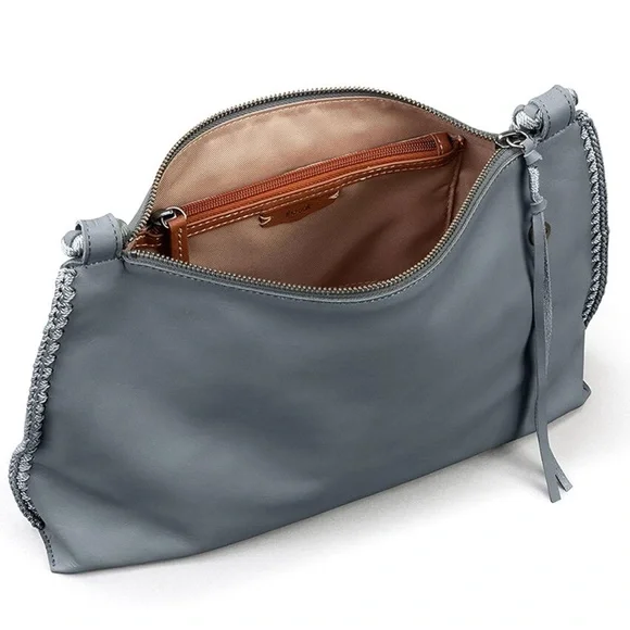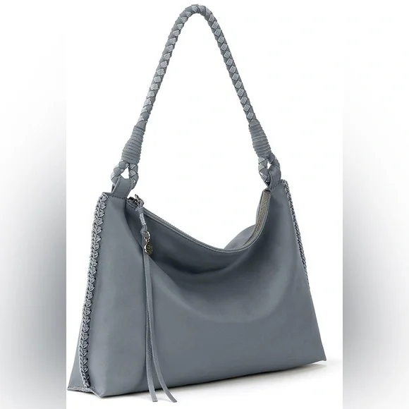 Defined by its gorgeously slouchy silhouette, Mariposa is an elegant shoulder style to carry day or night. A braided strap and whipstitch trim make it the ultimate minimalist addition to wardrobes.STYLISH & PRACTICAL: The Sak Mariposa Shoulder Bag is your ideal bag for work, travel, and everyday use. With room for your phone, wallet, keys, and other essentials, this purse is sure to become a wardrobe staple.PERFECT FOR EVERYDAY TRAVEL: Features a main zipper closure and an interior with a back wall slip pocket, zipper pocket and two front wall multi-functional pockets.PREMIUM ARTISANAL LEATHER: Bag exterior is leather sourced from a gold-rated certified tannery that complies with environmental sourcing processes & sustainable water usage. Bag interior is PETA-approved & Vegan Certified Repreve LiningDIMENSIONS & CARE: Bag dimensions are 13.5" L x 3" W x 9" H. Strap drop of 10". For care, use a water-based leather cleaner and moisturizer. Use a protective spray to protect the leather surface.In excellent condition. Like new.The color appears to be more grey than blue.
