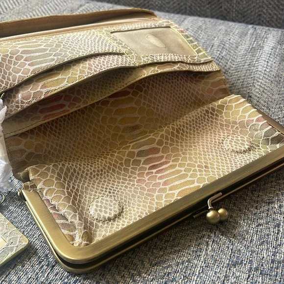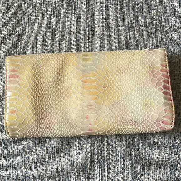 Hobo Lauren Snakeskin Pastel Rainbow Trifold Wallet Clutch