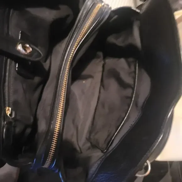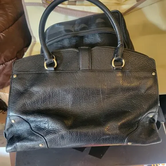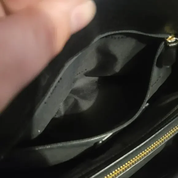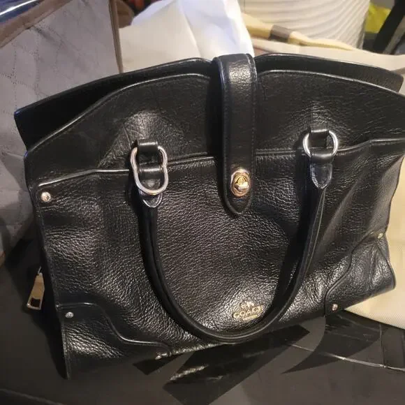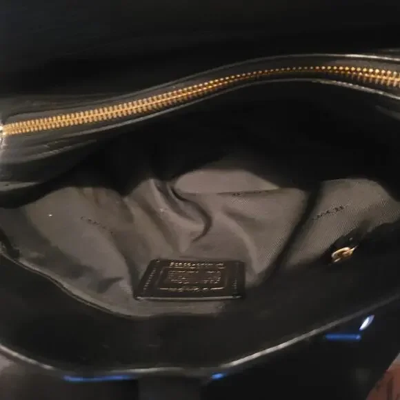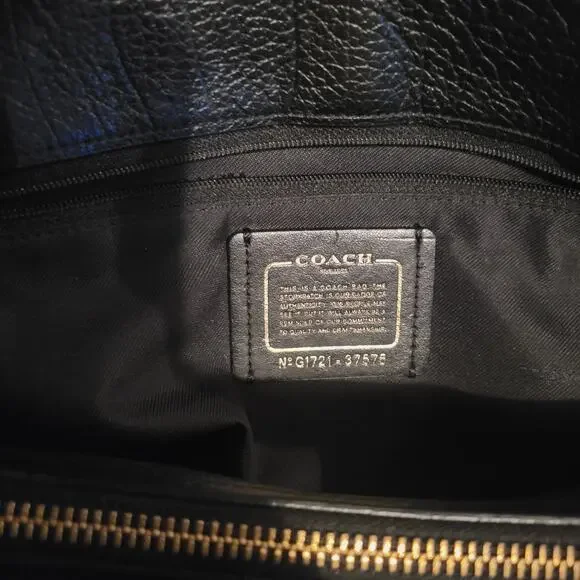 Beautiful, sleek, professional yet casual, leather bag. Quality craftsmanship you can expect from Coach. Lots of compartments and pockets for superior organizing and holding lots of belongings. Great gently used condition. Some small blemishes mainly on the exterior, some are shown in photos, could benefit greatly from a deep cleaning and leather treatment.DOES NOT INCLUDE THE SHOULDER STRAP. AND ONLY ONE OF THE HANG TAGS ARE INCLUDED, THE SOLID BLACK/BLANK ONE, MISSING THE ONE THAT HAS "COACH" PRINTED ON IT.Original dust bag included, which is in like new condition.