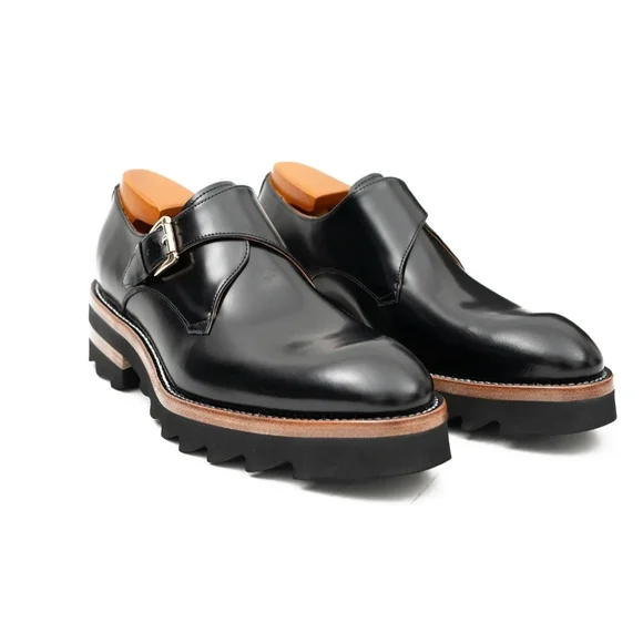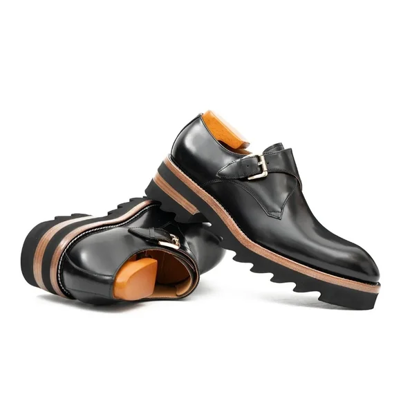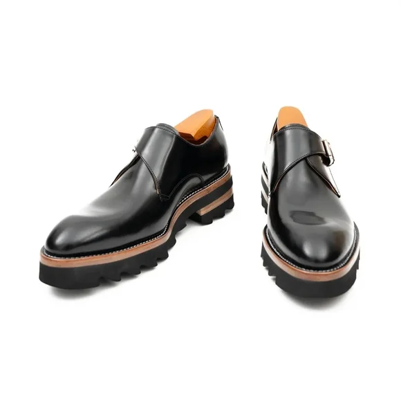 Step out in style with these sleek black leather monk strap shoes. Perfect for any formal occasion.