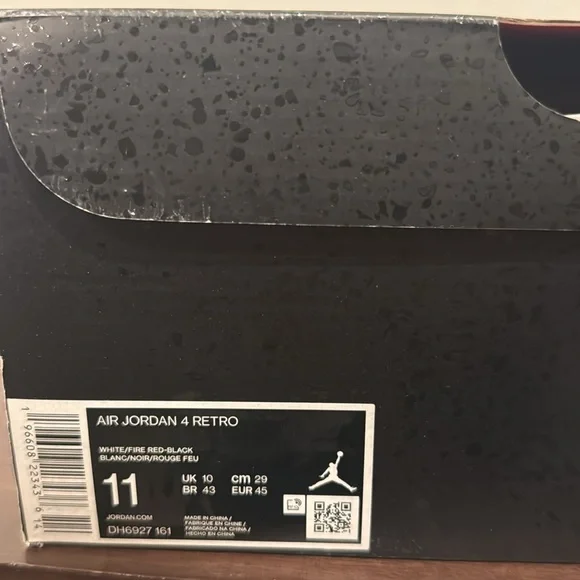 Air Jordan shoe box in black with red logo. Perfect for collectors.