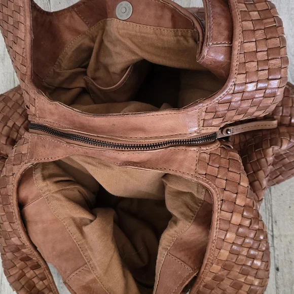 Vintage Look Woven Tote Another Beauty! Intricate Detailed Woven Leather Shoulder Tote Bag! Vintage look leather effect that only gets better with Time. The look of this product is the results of a special wash process.Each piece may vary in color and level of weathering, which only adds to its distinctive character. Flat dual handles with 11" drop, Zipper entry with 2 exterior compartments, one with 2 open slip pockets, and the other with wall zip pocket. Made in India.100% Authentic GuaranteedNo cancelations