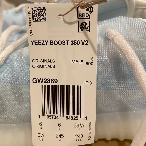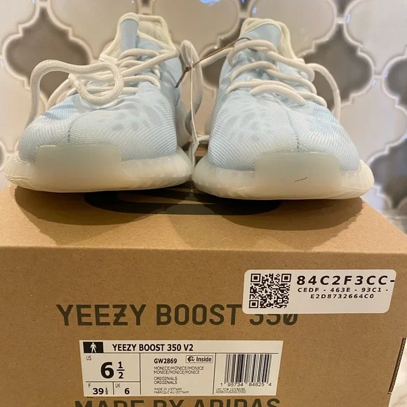 Never worn Yeezys men’s size 6.5. My husband did some o line shopping for me and didn’t realize all Yeezys are in men’s sizes. I’m a 6.5 in women’s and these are about 2 sizes too big. My loss your gain!