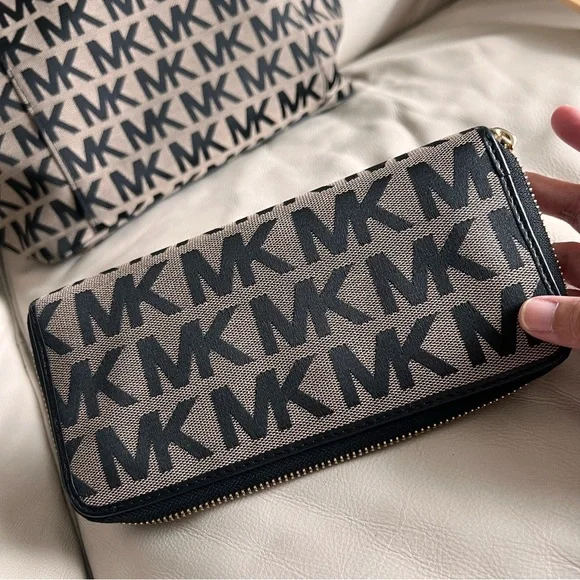MICHAEL KORS Monogram Tote Bag Shoulder Bag MK Logo Pattern with Wallet