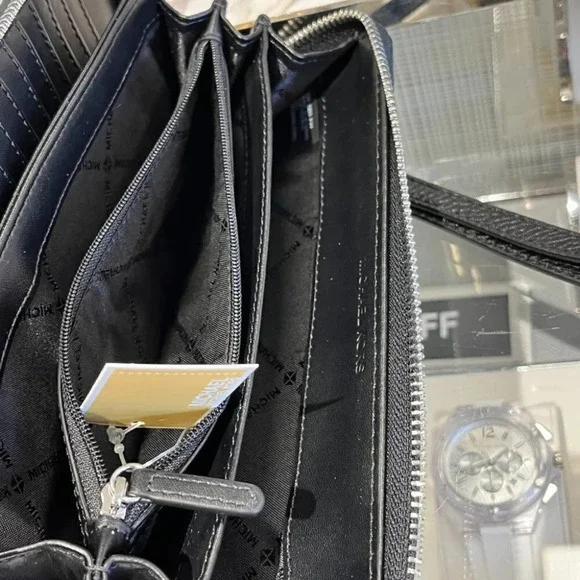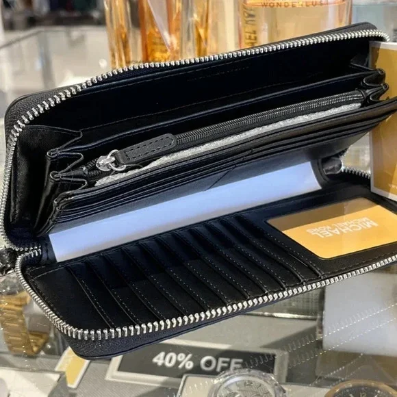 Michael Kors Jet Set Travel Zip Around Continental Wallet 35F7STVE7L In Black