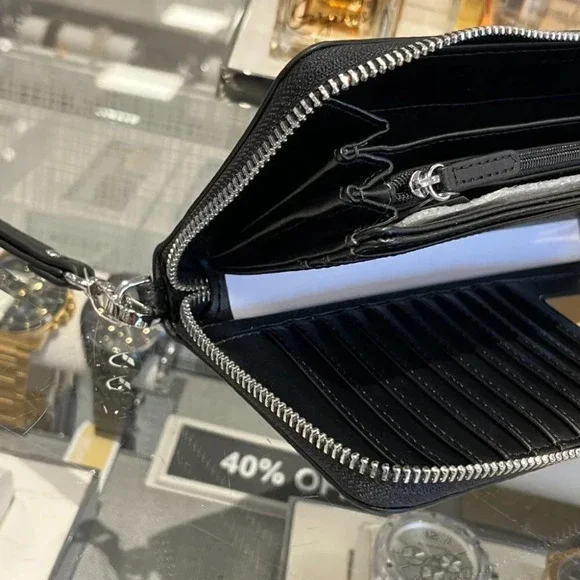 ★☆★☆ All our listed item are Brand New condition with Tag ★☆★☆8.25" (L) x 4" (H) x 1.25" (W) with a removable wristlet strapZip around style with iconic logo on the frontInterior features (16) card slips, a clear ID slot, a zippered pocket and multiple full length bill compartmentsRemovable leather wristlet strap with swivel clasp and a drop of 6 inches191935002105_35F7STVE7L-Black 6.8