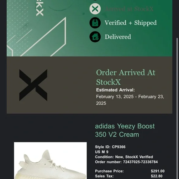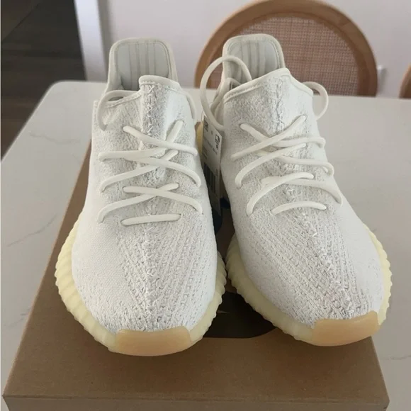 BRAND NEW! Just purchased from Stock X but the size didn’t work out and we couldn’t return. Tried on once. Still has tags and verification tags. Size 9, color Cream