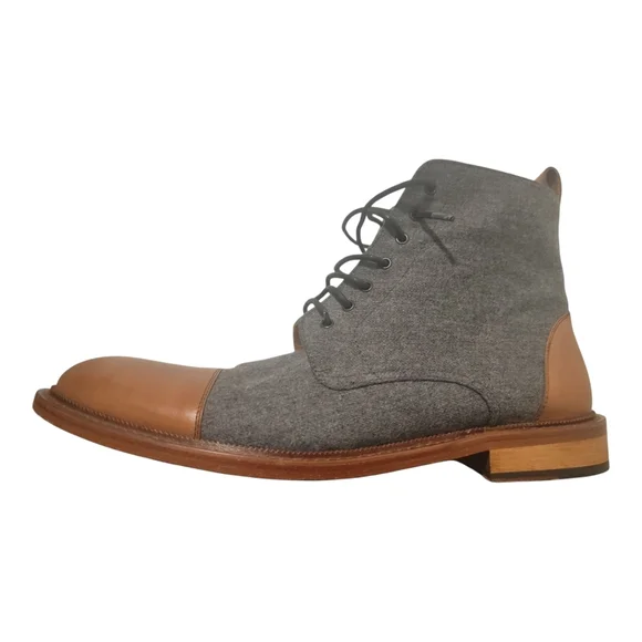 Stylish men´s lace-up shoes featuring a sophisticated gray and brown design. Perfect for both casual and formal occasions.
