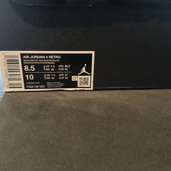 2024 release date Jordan Retro 4 Fear. Black/Gray/White NEW IN THE ORIGINAL BOX 8.5 men’s