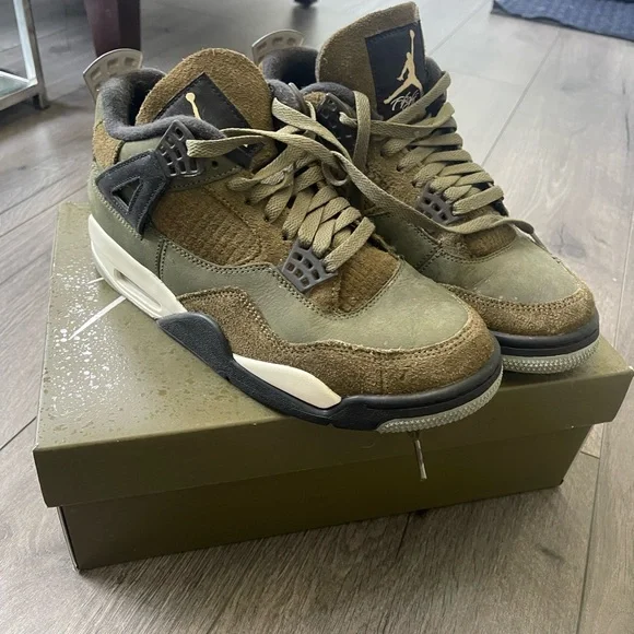Step out in style with these olive green sneakers. Perfect for any casual occasion.Bought these for my son on Stock X but they were too tight. Only worn about 3 times