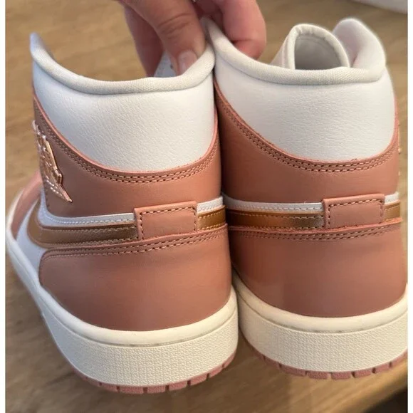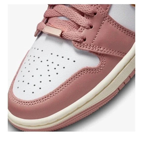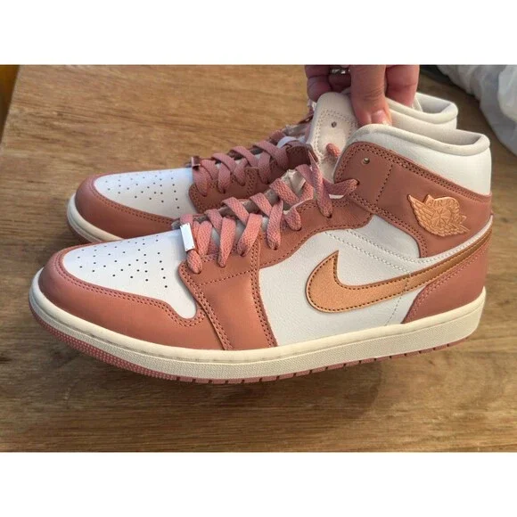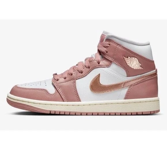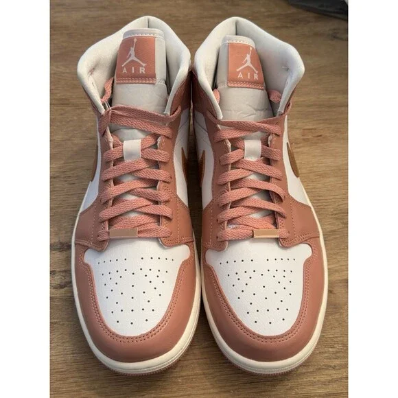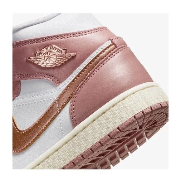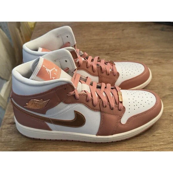 BRAND NEW Womens Nike Air Jordan 1 Mid SE in Red Stardust Copper White, no box, no tags, is a stylish and comfortable sneaker perfect for activewear and casual occasions.Size 12Featuring a lace-up closure, leather upper, and rubber outsole, these shoes offer cushioning, comfort, and breathability.The colorblock pattern and 90s retro theme add a trendy touch, while the mid-top silhouette and standard shoe width ensure a comfortable fit. Whether you´re hitting the gym, walking around, or playing basketball, these Jordan 1 Mid sneakers are a fashionable choice for any season.