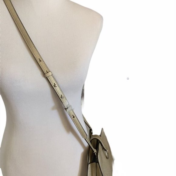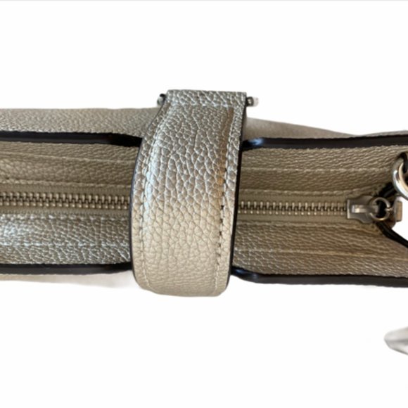Features:Genuine leatherSilver tone hardwareFront magnetic snap closureZip top closure Approx. 50” strapLinedInner slip pocketInner zippered pocketMeasurements:8 ½” W X 6...