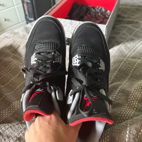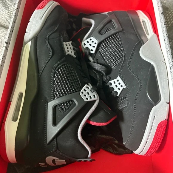 Good condition 4 Retro Men’s 8.5 Black/fire red-cement grey