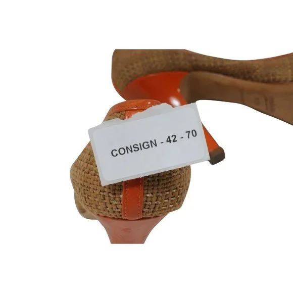 - Tan, orange trim with green croc toe- Tagged size 37.5- No boxCondition: The heels are in overall decent condition with no major imperfections Consign - 42 - 70