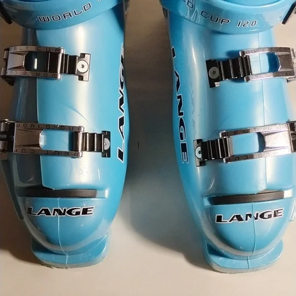 Lange World Cup 120 crazy blue ski boots size 11.5 mens vintage 2006