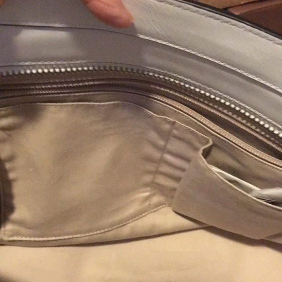 Like new Legacy tote. Roomy interior. Two Inside zipper pockets. Large zipper pocket on back. Color is bright white. Deep purple tag and tassels. A great addition to your closet. Wallet isno longer available. Free beauty gift/samples when you purchase from my closet!