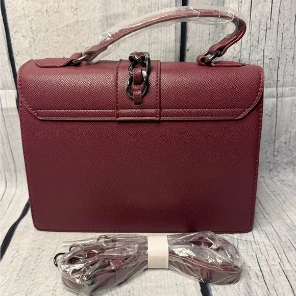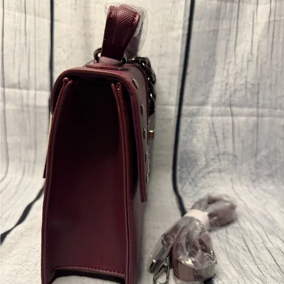 This sophisticated Badgley Mischka shoulder bag in a striking red hue is crafted from premium materials, featuring a structured design and elegant studded accents. Its classic yet contemporary style makes it a versatile accessory for any occasion.