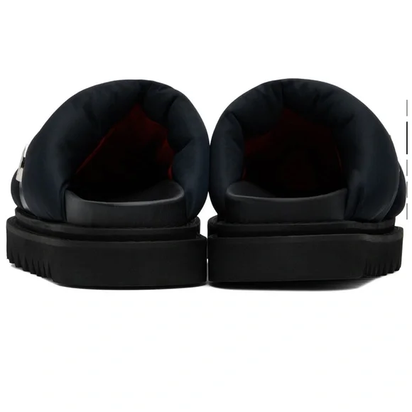Size 46=13 US. ***NEVER WORN WITH BOX AND SHOE BAG***Padded nylon taffeta slippers in black.• Hardware at buffed leather strap• Molded buffed leather footbed• Foam rubber...