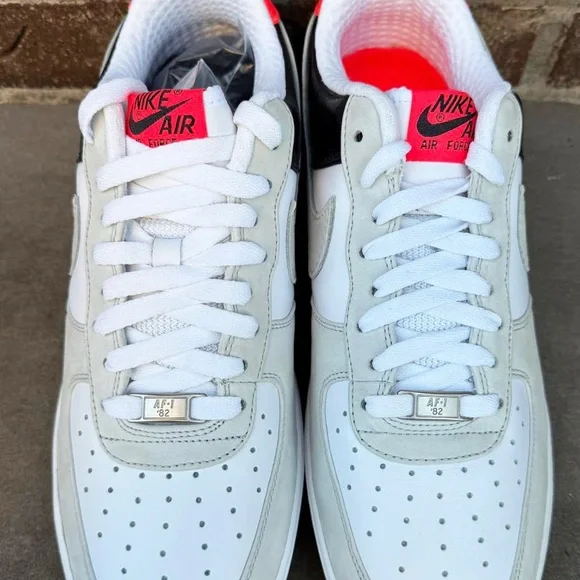 -Brand new in damaged box -Released in 2008 (318775 101) Nike Air Force 1 Low Premium White / Neutral Grey Black Infrared.This was a part of a pack of premium Air Forces that included a Mowabb, Am 95 Neon, ACG Wildwood And Spiridon to name a few.Nike took the most iconic silhouettes and turned them into an Air Force like this one.