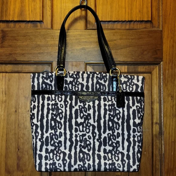 Coach Signature Leopard Ocelot Animal Print Zip Tote Shoulder BagE1405-F31901New With Tag ConditionBlack & Tan With Black Leather Trim & HandlesZipper ClosureGoldtone HardwareCoach HangtagOutside Front Slip PocketInside Zipper Pocket & 2 Slip PocketsInside Black Fabric LiningMeasurements10.5" Height4" Wide11" Length8" Handles Drop