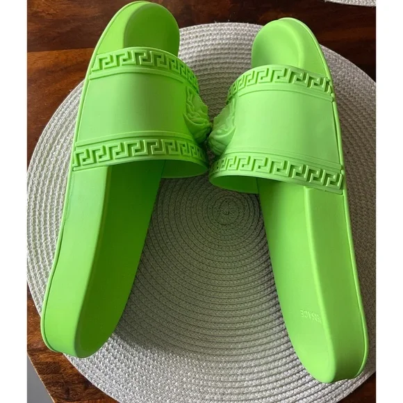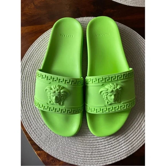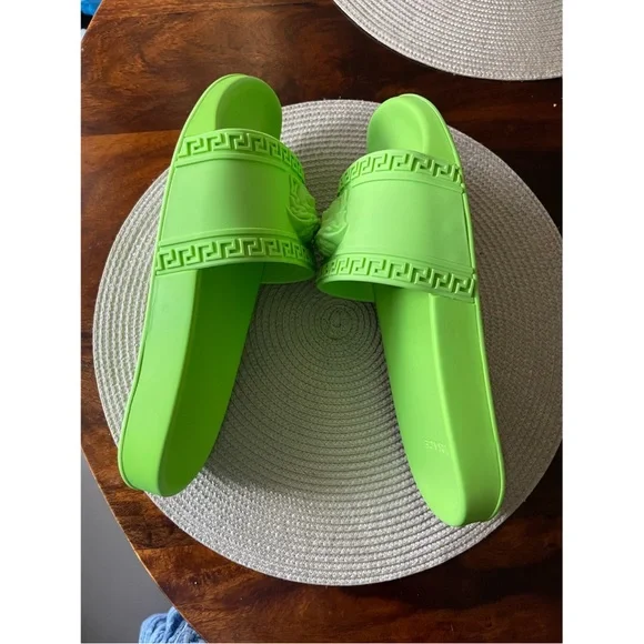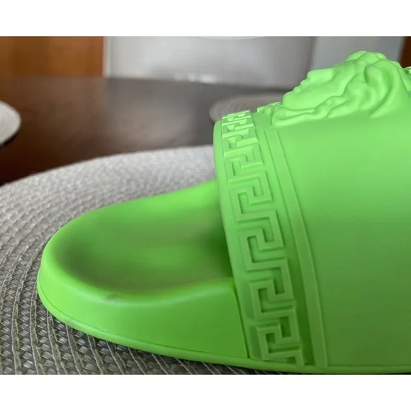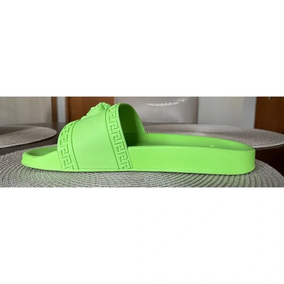 Versace green rubber pool slides, 42Made in Italy