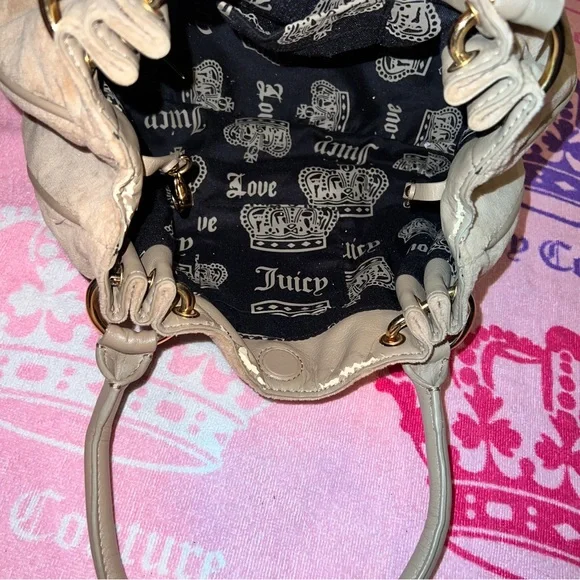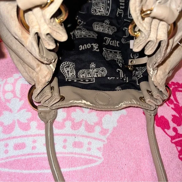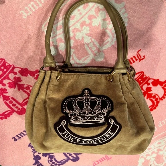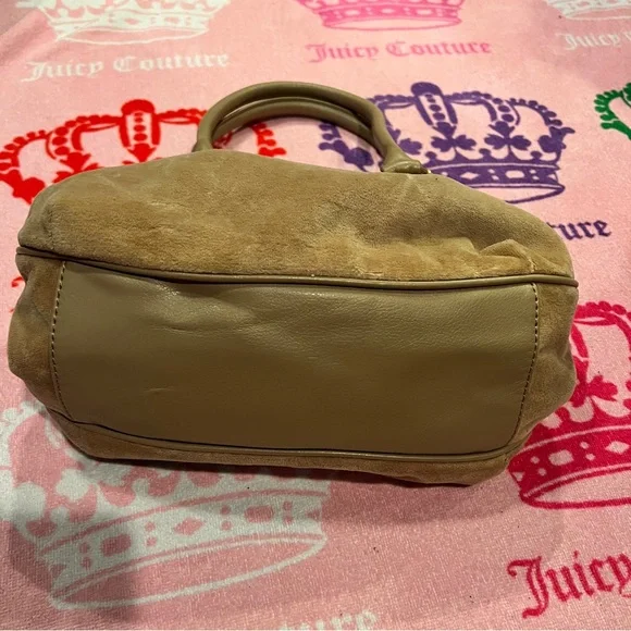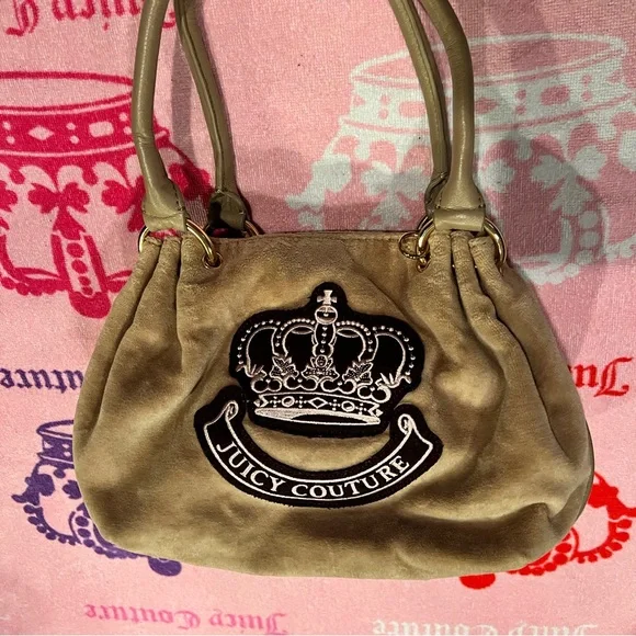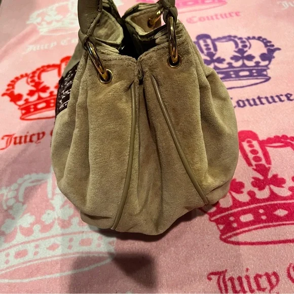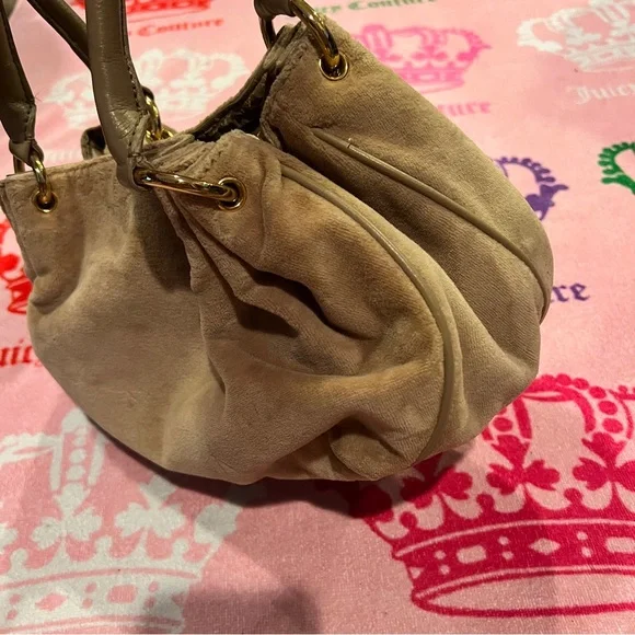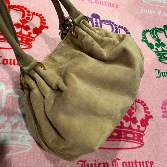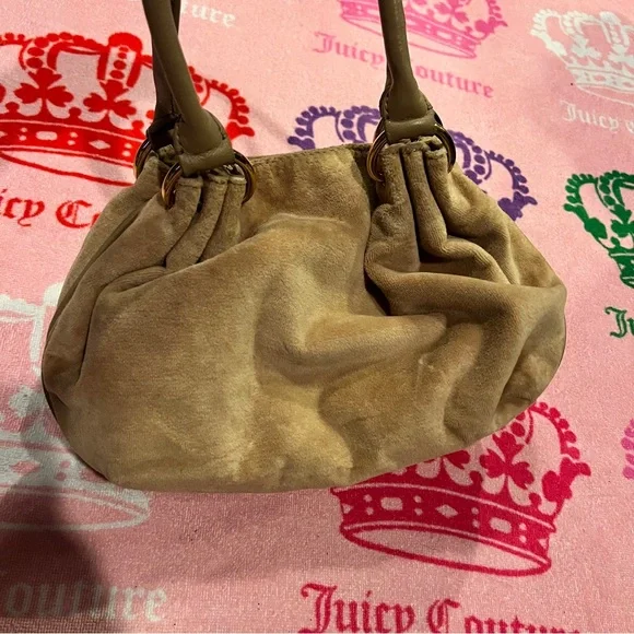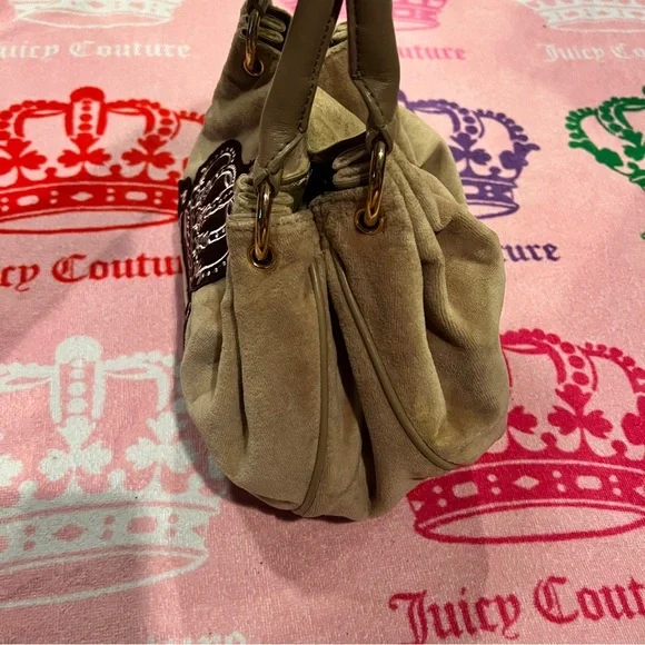 Vintage Tan Juicy Couture Purse Bag Satchel Handbag Velour Y2K Crown