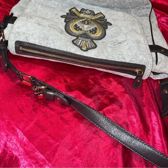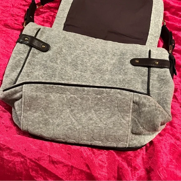 Vintage Grey Juicy Couture Messenger Bag Purse Crossbody Heart Velour Y2K