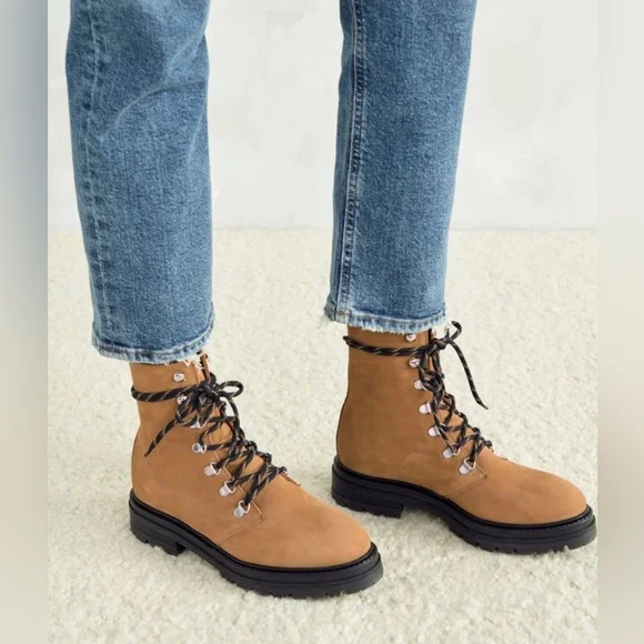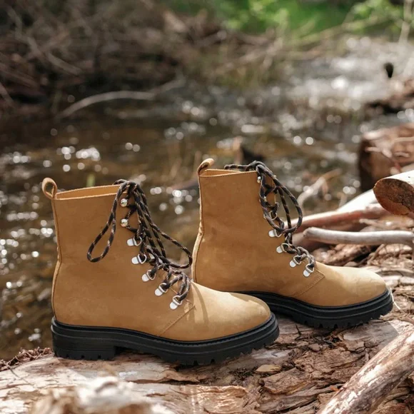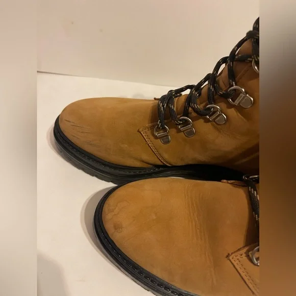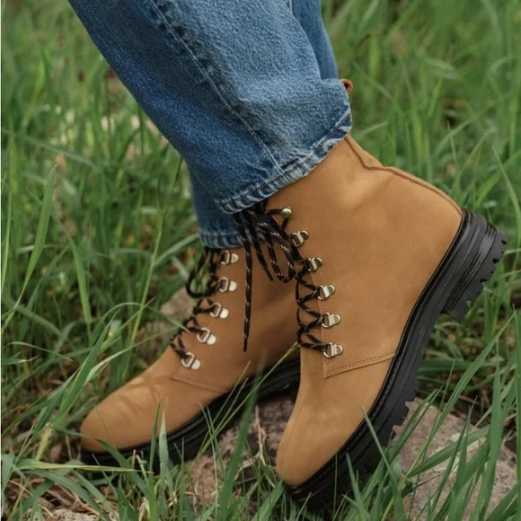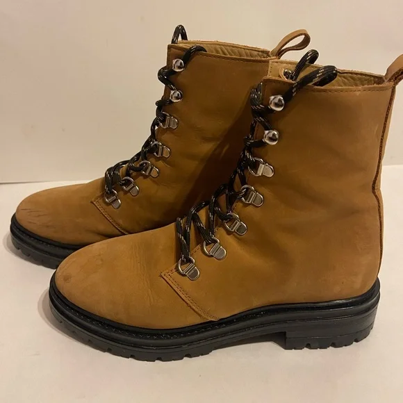Made in Portugal from timeless oiled leather, this classic and comfortable nod to trail-inspired style is perfect for everyday wear. Feel soft like suede Leather upper with lug sole, lace-up front, and pull tab at ankle.Made in Portugal.Fit true to sizeStill in StoreCondition- very good. Slight marking on toe as shown