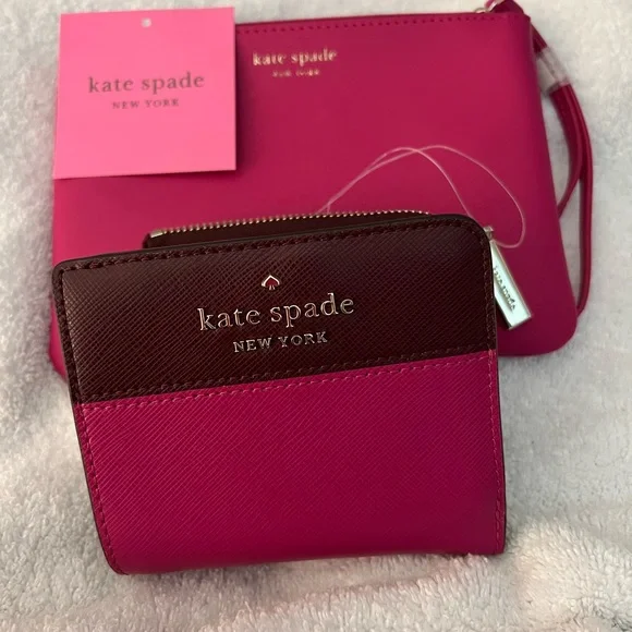 New KateSpade Color-block Fold wallet and wristlet. Darling pieces. Tag is for the wristlet only. Pieces purchased separately but being sold as a pair. Great set