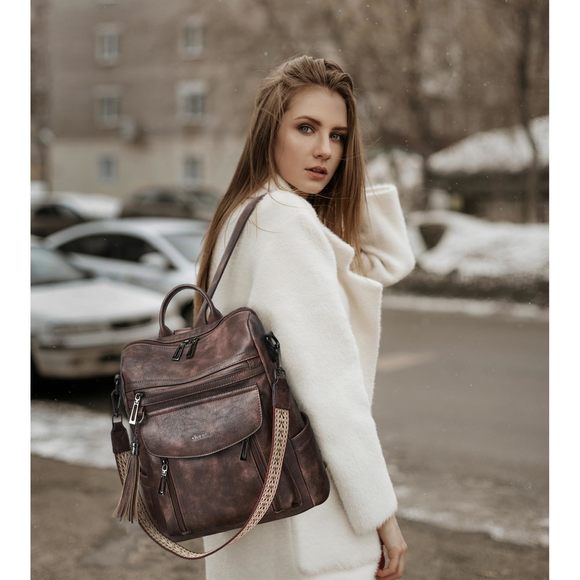 fashion-backpacks; Shrrie Backpack Purse for Women + Clear Stadium Bag; Leather