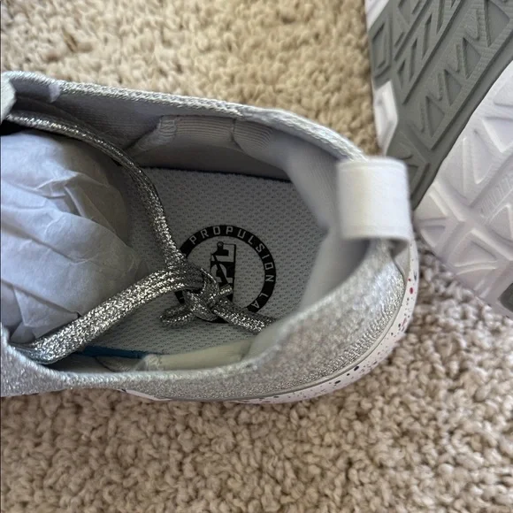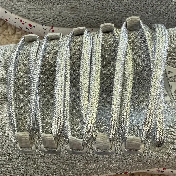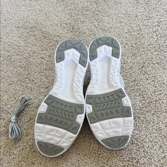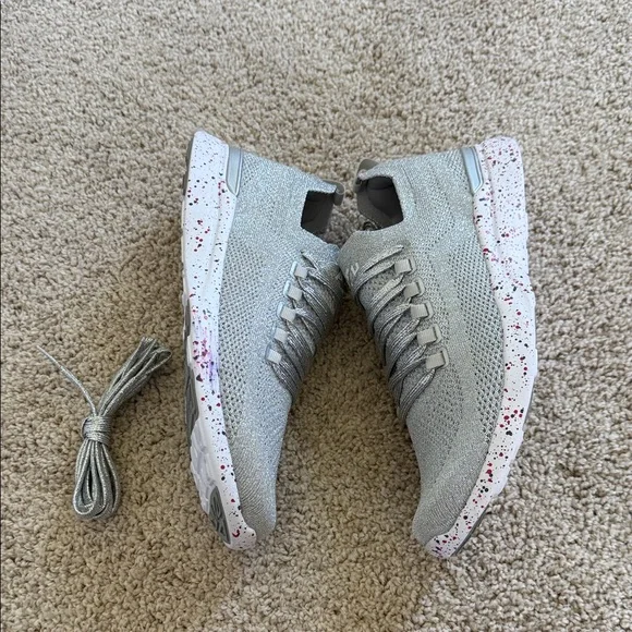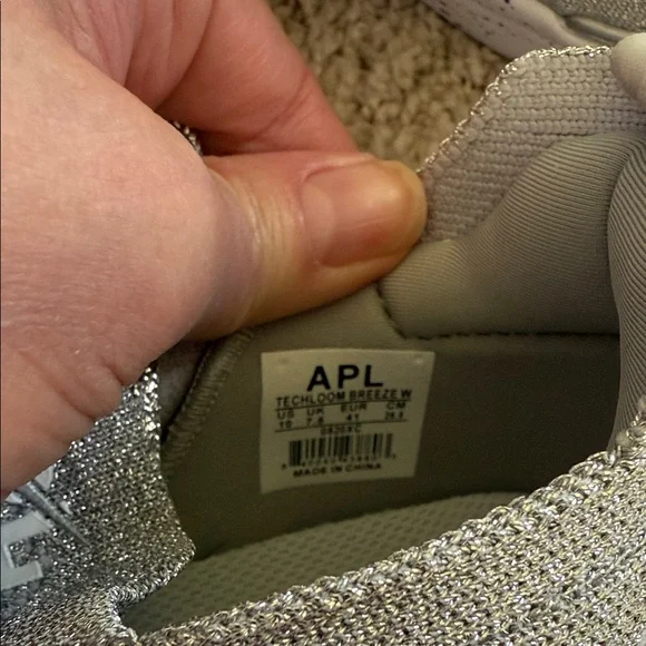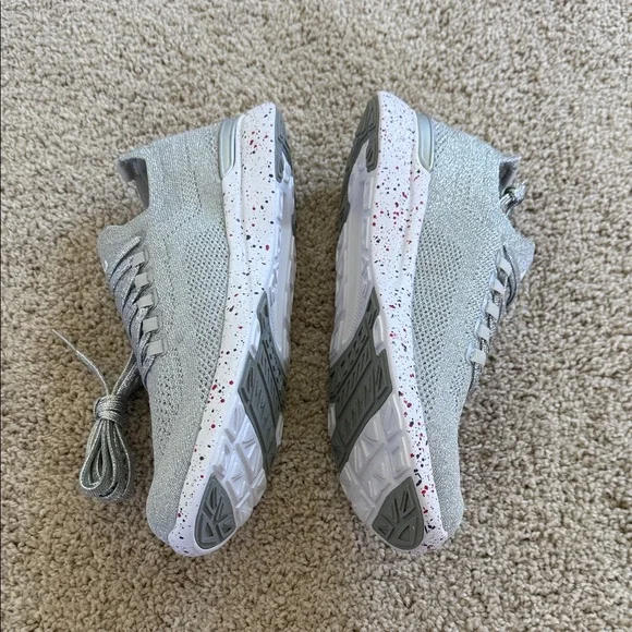 APL sneakers with a light gray knit upper. Comfortable and stylish for everyday use.