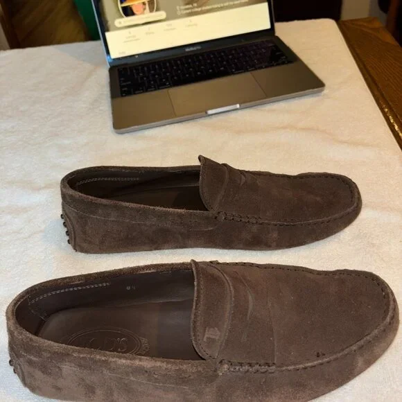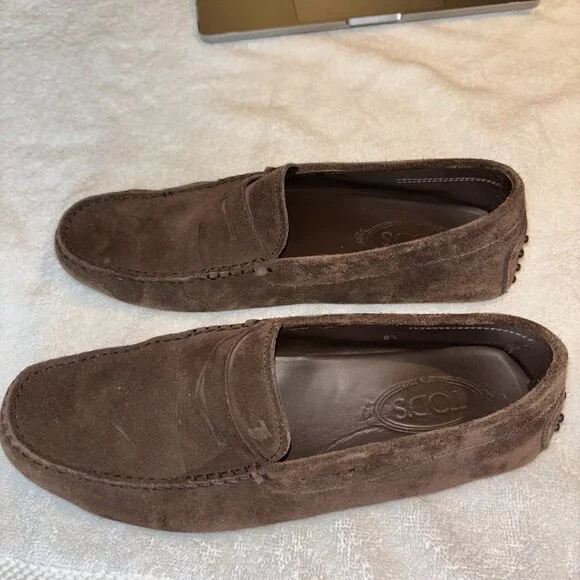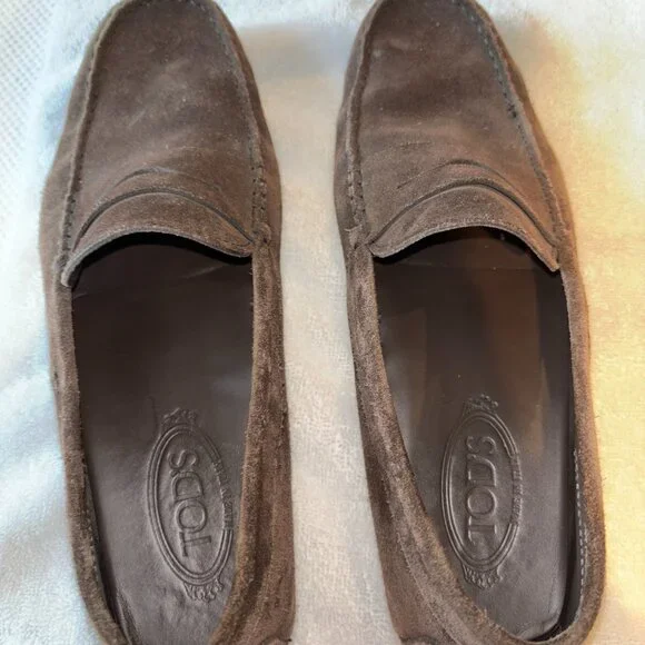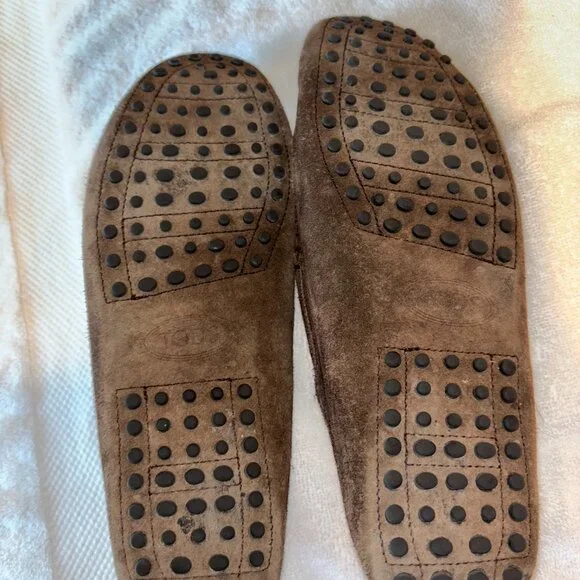 Elevate your footwear collection with these authentic Tod´s Gommino suede driving loafers, a luxurious blend of style and comfort. Purchased from the prestigious Tod’s store in the Dubai Mall, these loafers epitomize elegance and craftsmanship.Brand: Tod´sModel: Gommino Suede Driving LoafersSize: 9Color: BrownMaterial: SuedeCondition: No box Moderately worn, well-maintained, and in good condition with some signs of wear as shown in the photos.Retail Price: $500Details: Classic slip-on design, signature rubber pebble sole for enhanced grip and comfort, Tod´s logo embossed on the insole.Perfect for both casual and semi-formal occasions, these Tod’s loafers offer unparalleled comfort and timeless style. Don´t miss the opportunity to own a piece of luxury footwear at a fraction of the original price.