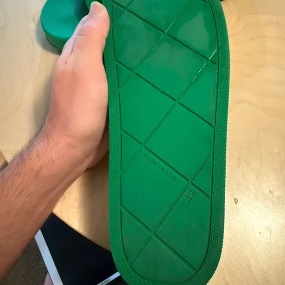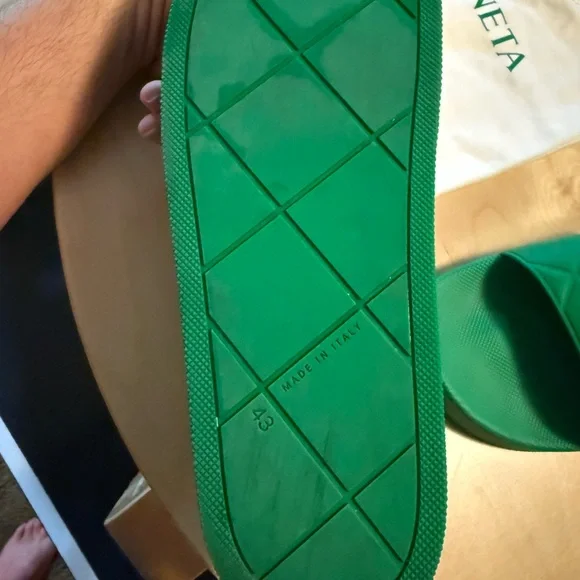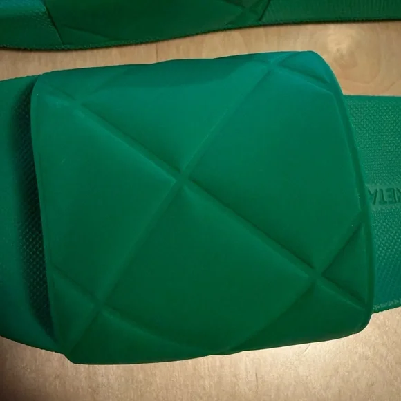 Stylish and comfortable Bottega Veneta rubber slides with a quilted design. Comes with a branded dust bag. These have been worn one time.Color - Parakeet