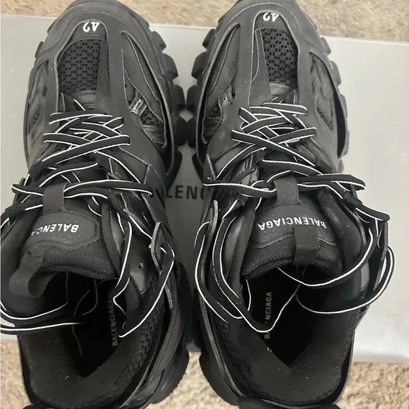 Experience the perfect blend of style and performance with Balenciaga´s black sneakers. These shoes feature a robust, chunky design with a complex lacing system and...