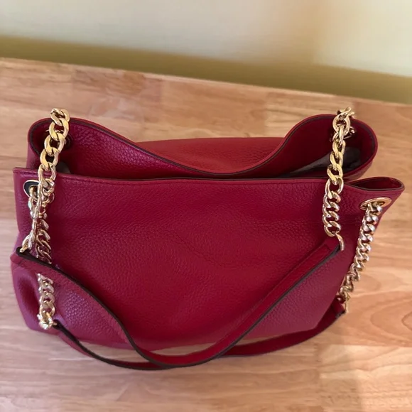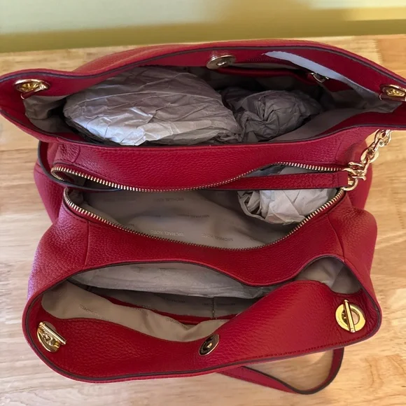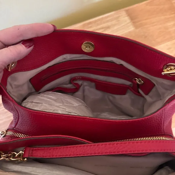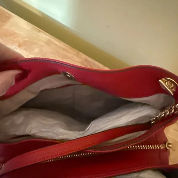 NWOT Michael Kors handbag LeatherRed LeatherChain with leather handlesTop zipper enclosure with snap button