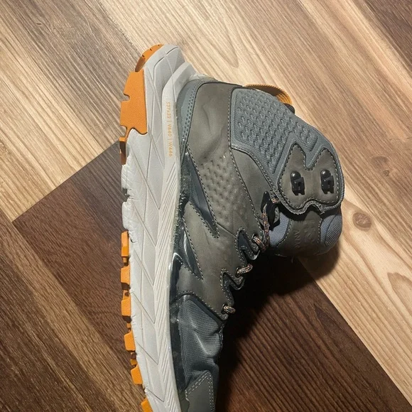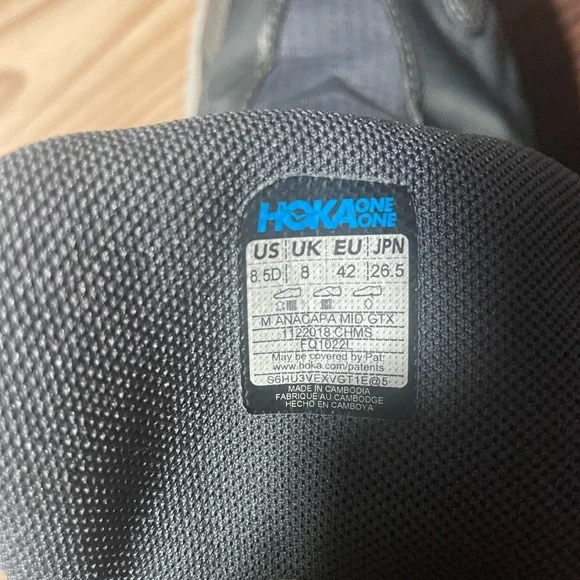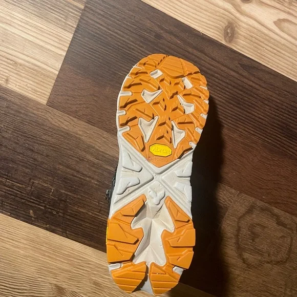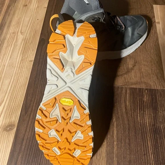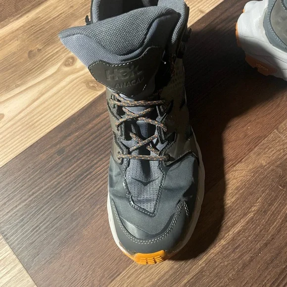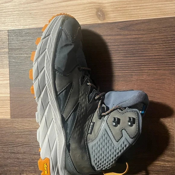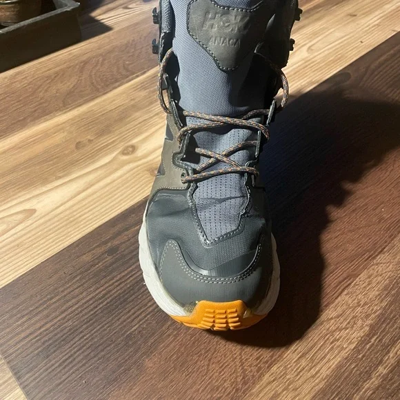 Men’s hoka anacapa hiking boots. I have washed these thoroughly in cold water before listing but have only worn them approximately 5 times. They are waterproof but i would consider them about 85% waterproof. I’d have very slight water come through in the arches though I was looking for issues. I glued the soles before i started wearing them because friends have said that was their only complaint, sole separation. I wanted to sell as I knew they would not hold up for my intended use! Definitely open to offers thanks!