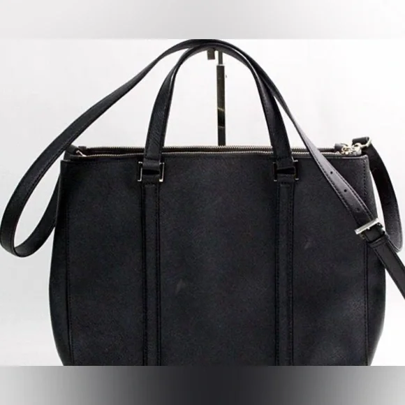 Kate Spade NY Newbury Lane Black Saffiano Leather Loden Convertible Satchel-Snap with double zipper closure.3 interior pockets, 2 slip/ 1 zip.Purse Type & Closure: Convertible...