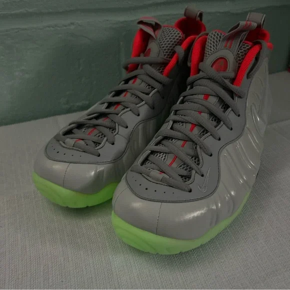 Nike Foamposite sneakers featuring a sleek gray design with vibrant red accents. Ideal for everyday style.