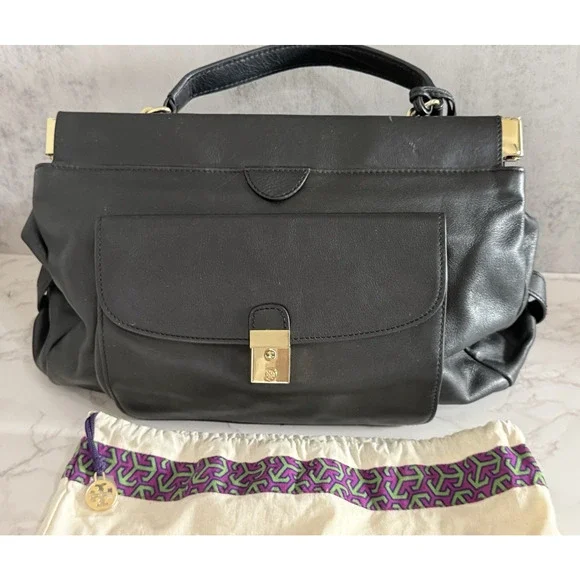 Vintage Tory Burch Crossbody - Priscilla Top Handle Black Leather Purse Satchel
