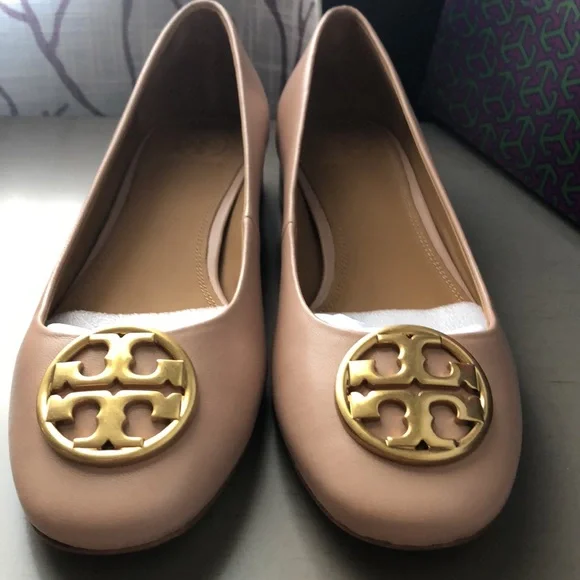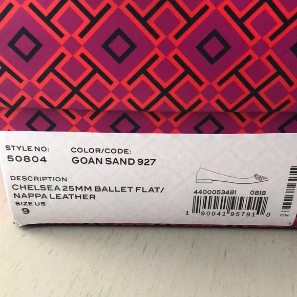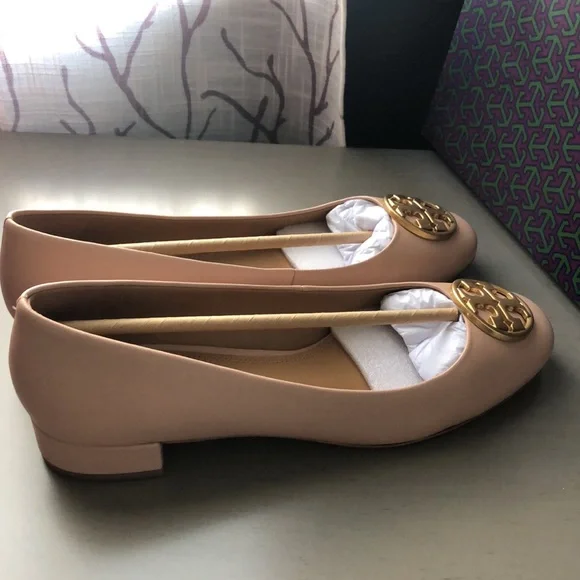 Tory Burch Chelsea 25mm Ballet Flat. Featuring a round toe, gold-tone logo plaque, a branded insole and chunky low heel.Details- Size: 9- Chelsea 25mm Ballet Flat- Nappa Leather- Color: Goan Sand 927- Style #: 50804Brand new with box and dust bagFrom a smoke and pet free home