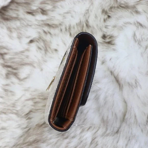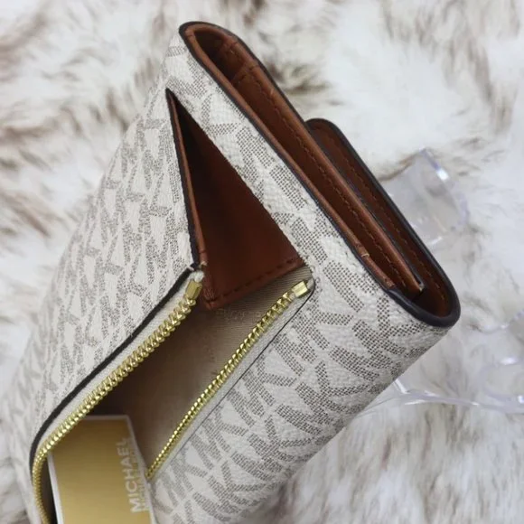 ★☆★☆ All our listed item are Brand New condition with Tag ★☆★☆★★Original Wrapping★★Small MK SignatureGold Toned HardwareVanilla ColorSnap ClosureZip Pocket at Back1 Window ID, 4 Bill Slots, 17 Credit Cards SlotsCustom Fabric Lining7.5"(W)x 4"(H)x 0.75"(D)w-192877938538_35F8GTVF3B-LGTRIFOLD/VANIL 6.8.1