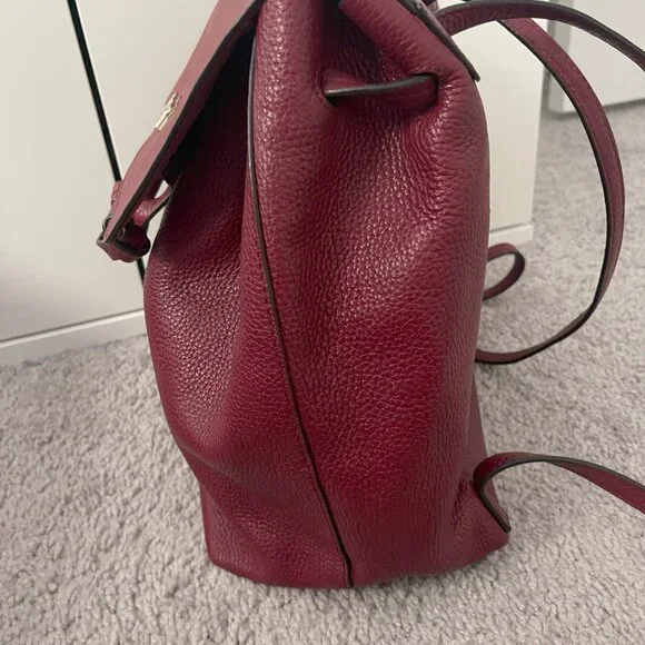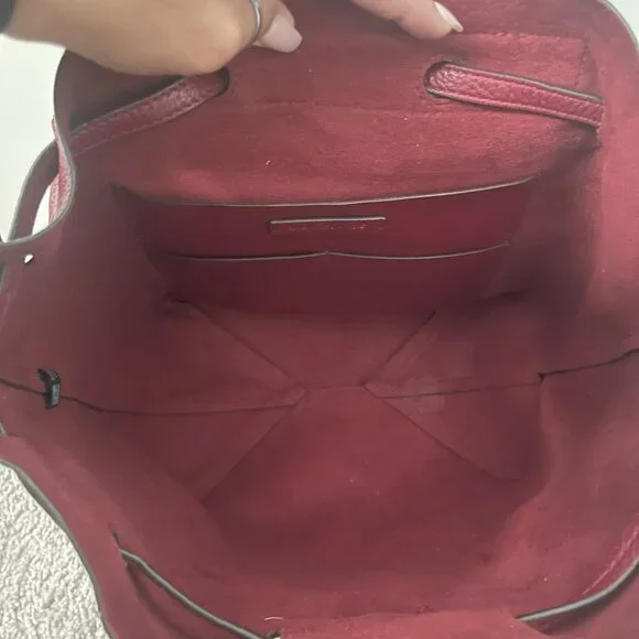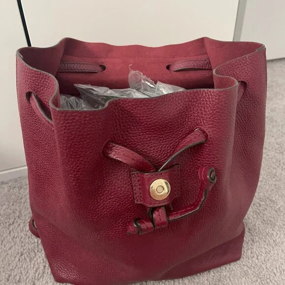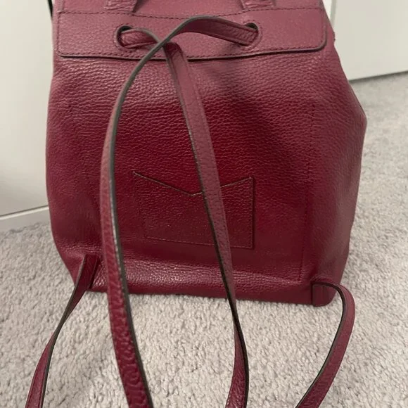 Practically new backpack to carry on your back, also with a small handle to carry in your hand, interior pockets, double closure with magnet and drawstring. Deep Red in color