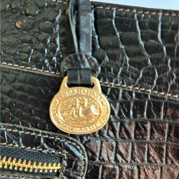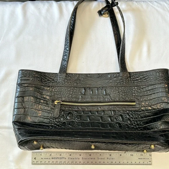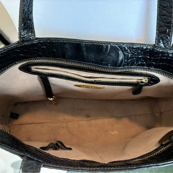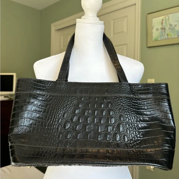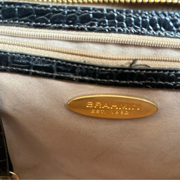 Black Crocodile Embossed Black Leather shoulder bag by Brahmin. Roomy inside with one zippered compartment and two pockets and front has zippered compartment . Lots of room for...